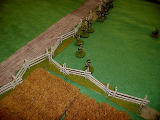 The left wing of sharpshooters pushed forward to clear the farm ahead.