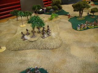My men were glad of their cover as Roderick had got his men back into command and were attacking in support of the first unit, I was now outnumbered 2:1, and my men only managed a ragged volley, which didn't bother the Arabs a bit!