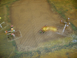 I went head to head with a Fokker, and lost out (as usual, our solo rules run planes do not count special damage beyond Bangs and gunner losses)